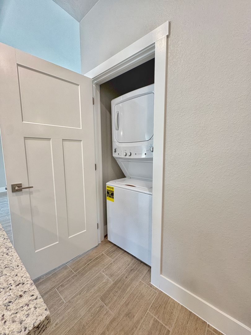 Enjoy the convenience of a stackable washer and dryer, thoughtfully included to maximize space and efficiency. Each bedroom offers comfort and privacy, while the bathrooms are sleek and functional.